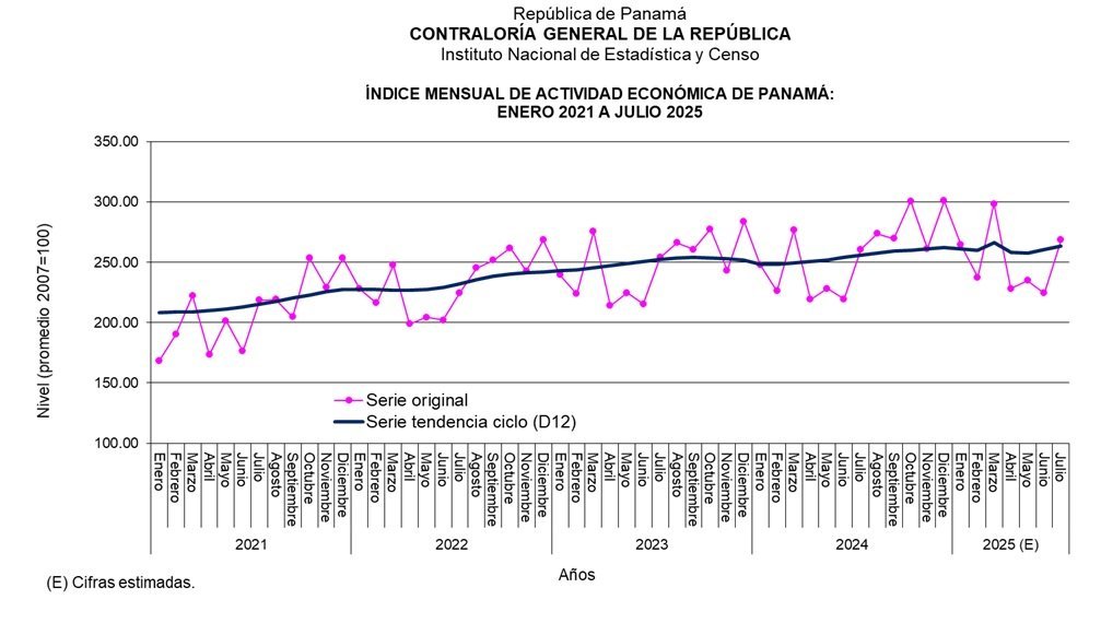 En términos nominales, el PIB alcanzó B/.20,142.8 millones, mientras que el Índice Mensual de Actividad Económica (IMAE) acumulado de enero a julio reflejó un crecimiento de 4.67%, confirmando la tendencia de expansión moderada.